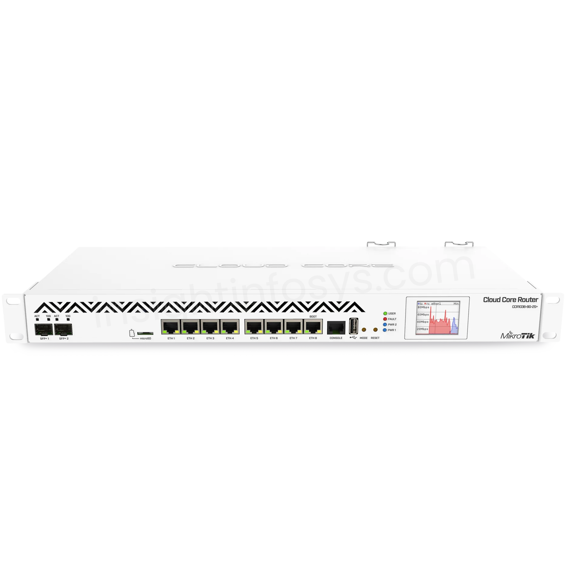 CCR1016-12G is an industrial grade router with a cutting edge 16 core CPU. If you need many millions of packets per second – Cloud Core Router is your best choice. Unit is equipped with 12 x Gigabit Ethernet ports and color touchscreen LCD.
